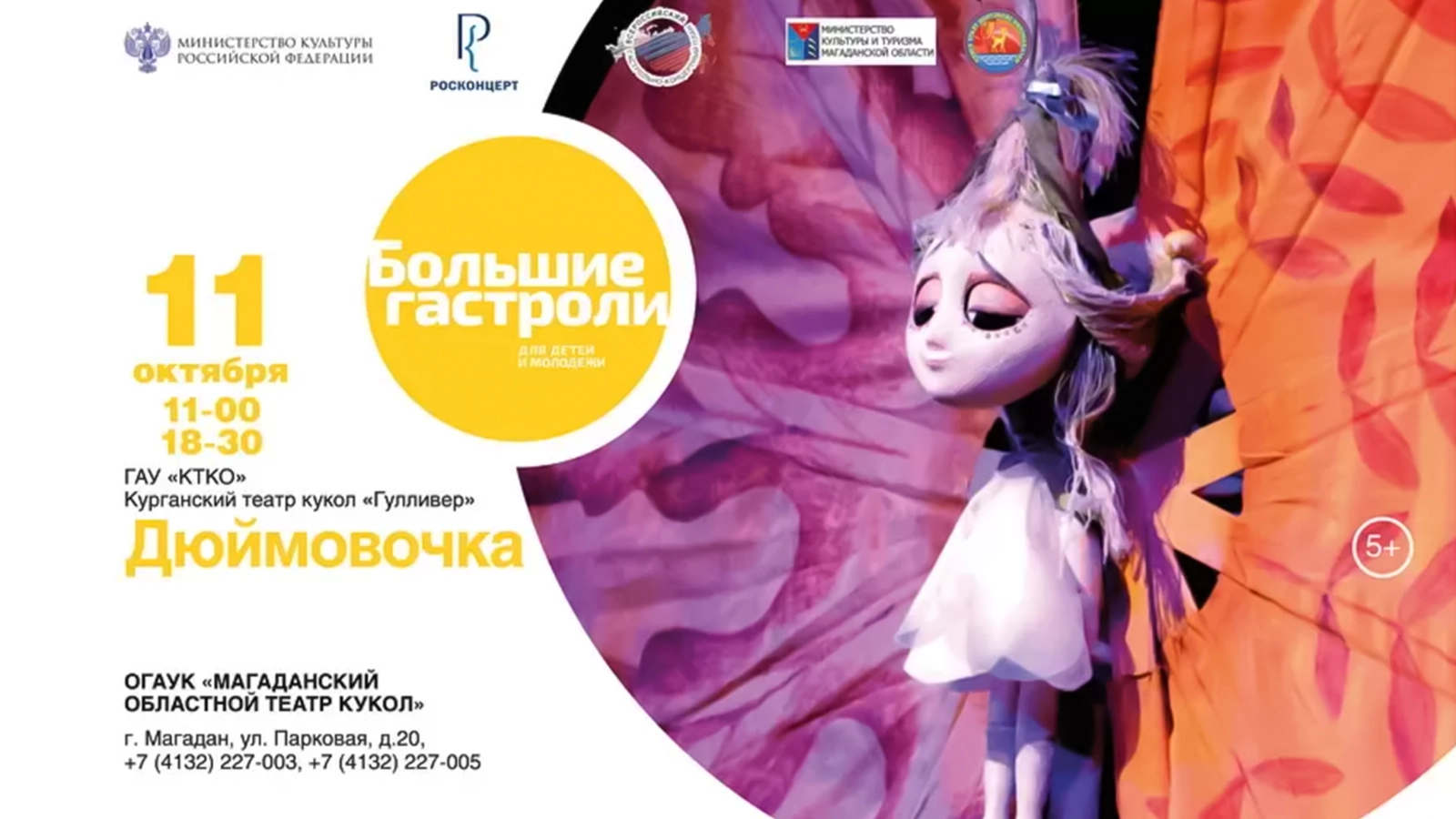 Большие гастроли Курганского театра куколМагаданМагаданская областьс 11 по 13 октября 2024 О мероприятии Информация